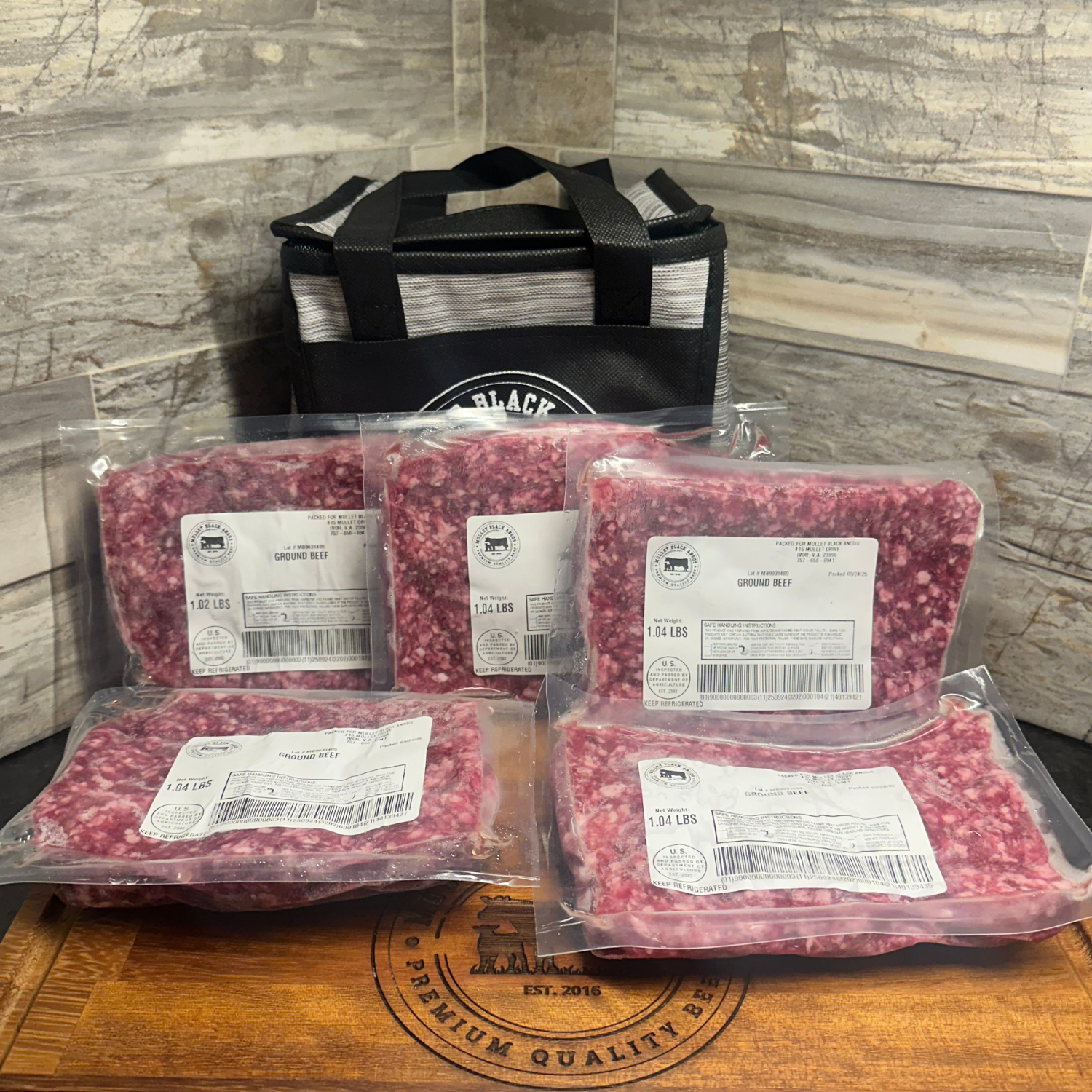 Stock your freezer with farm-fresh flavor! Our Black Angus ground beef is grass-fed, grain-finished, and raised with care—always free of added hormones or antibiotics. Perfect for weeknight meals or weekend cookouts, this 5 lb. bundle gives you just the right amount for burgers, tacos, meatballs, or your favorite recipes.